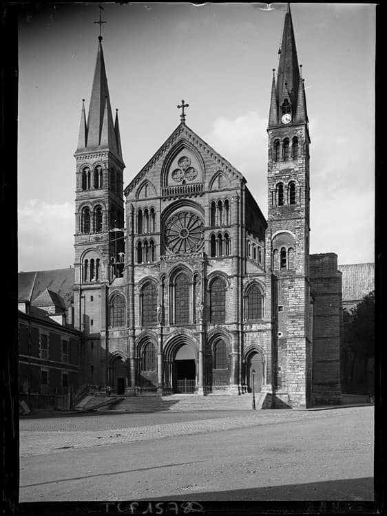 POP | Plateforme ouverte du patrimoineFaçade occidentale, des ouvriers travaillant au troisième niveau du clocher gauche