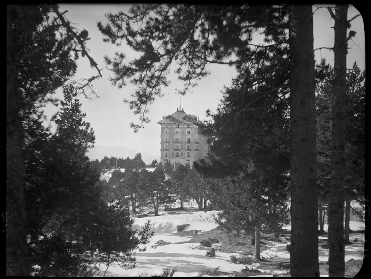 POP | Plateforme ouverte du patrimoineFaçade latérale vue à travers une forêt de conifères