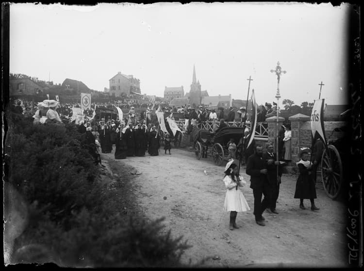 POP | Plateforme ouverte du patrimoineProcession pour le Pardon de Notre-Dame de la Clarté, la chapelle en arrière-plan