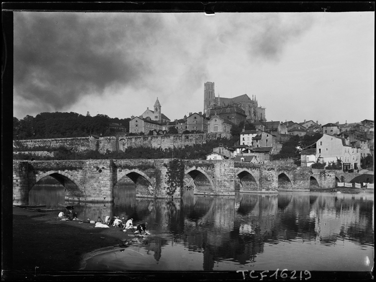 POP | Plateforme ouverte du patrimoineLavandières lavant au pied du pont, la cathédrale Saint-Étienne en arrière-plan