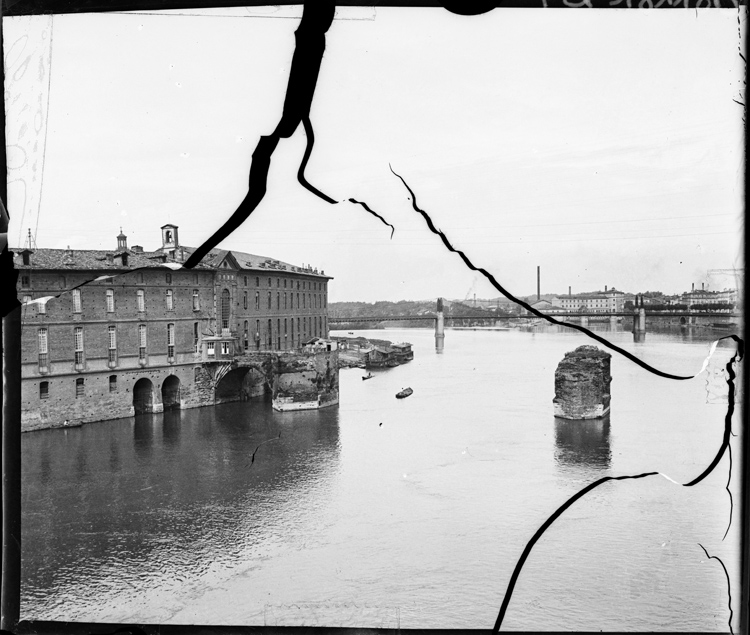 Façade de l’hôtel-dieu et ruines du pont de la Daurade, prises depuis le Pont-Neuf