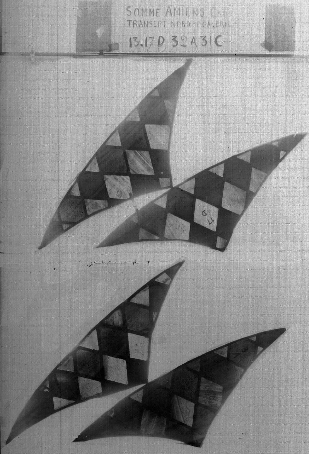 POP | Plateforme ouverte du patrimoineTransept Nord, première galerie ; Baie D, fragments 13 - 17 ; Baie A, fragment 32 ; Baie C, fragment 31