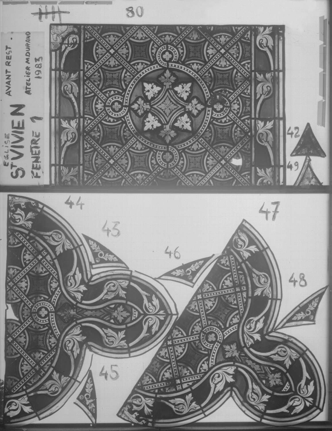 Fenêtre 1 ; Façade Ouest ; Panneau 80 ; Lobes ; Fragments