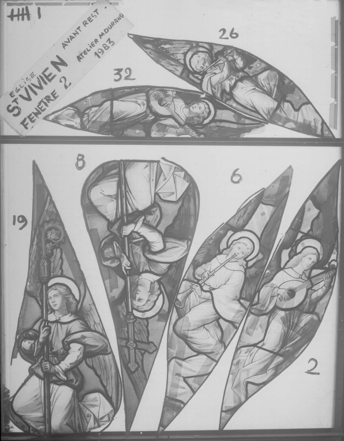 Fenêtre 2 ; Façade Ouest ; Fragments 6 - 2 - 8 - 19 - 32 – 26 (Anges)