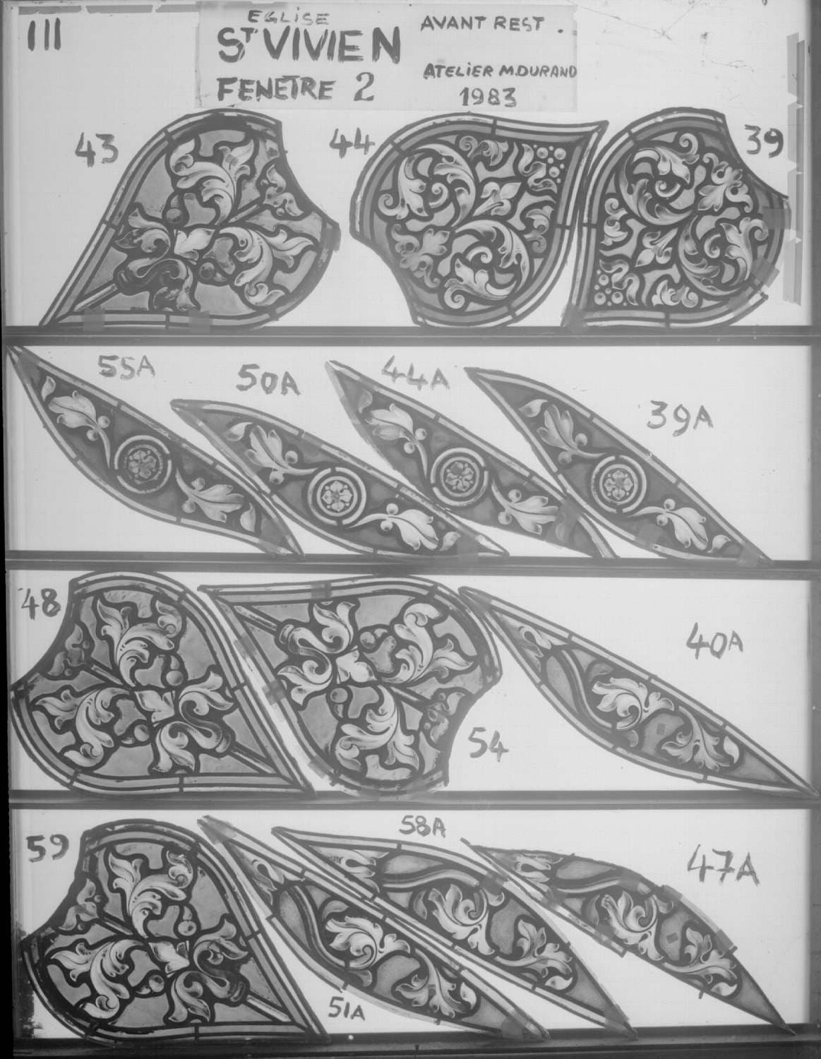 Fenêtre 2 ; Façade Ouest ; Fragments A55 - 50 - 44 - 39 - 40 - 43 - 44 - 39 - 54 - 59