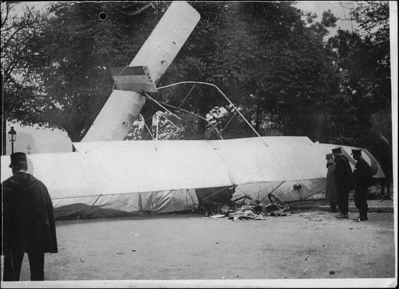 POP | Plateforme ouverte du patrimoineJardins du Trocadéro. Les restes de l'aéroplane Voisin V347, tombé dans les jardins le 11 octobre 1915