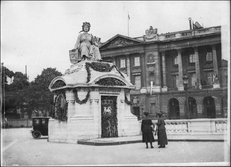 POP | Plateforme ouverte du patrimoinePlace de la Concorde. Statue pavoisée représentant la Ville de Rouen