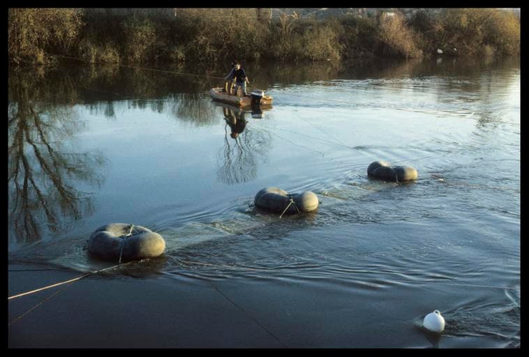 Vue de la mise en place du plateau de levage (fouille A. Marguet/Drassm).