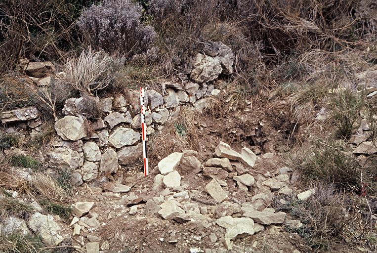 Vue rapprochée. Structures de la route du Mont Vial (site gallo-romain coupé lors de la construction de la nouvelle route). Les Chabanes, Toudon (Alpes-Maritimes).