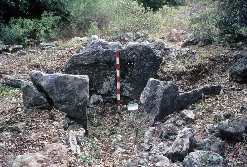 Vue générale du dolmen du Collet de Stramousse qui, fouillé une première fois en 1905 par Paul Goby, a été revu en 1971 par Gérard Sauzade. Appartenant au groupe des dolmens à chambre carrée de Provence orientale, il est composé d'une chambre de 1,50 m de côté et d'un couloir à l'ouest. Les dalles de calcaire local, comme souvent dans les Alpes-Maritimes, sont complétées par des murets en pierres sèches. La cella contenait les restes très brisés et brûlés de 35 à 40 individus. Gérard Sauzade attribue ce dolmen Néolithique final-Chalcolithique-âge du Bronze (Cabris, Alpes-Maritimes).