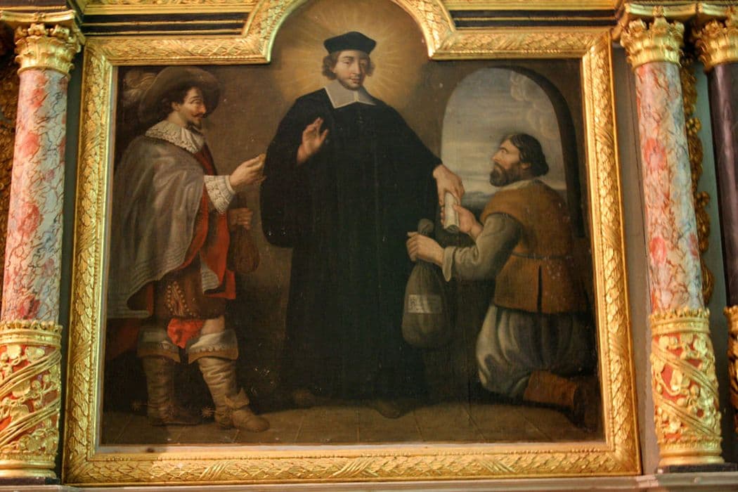 tableau du retable de la chapelle sud : Saint Yves entre le riche et le pauvre