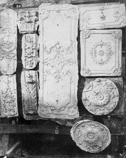 Surmoulage de fragments de boiseries (pilastre et battant de porte) du grand cabinet au rez-de-chaussée, par le sculpteur Rouyer.