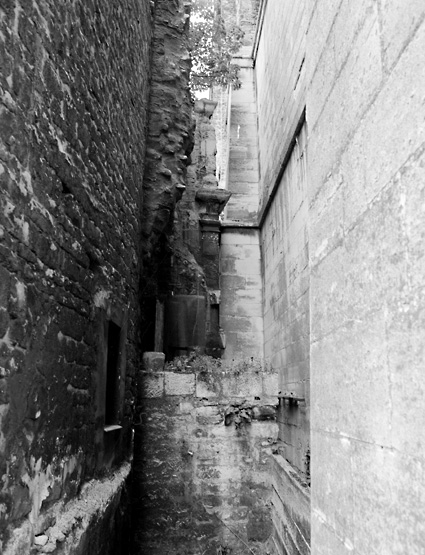 Détail des maçonneries au pied de l'aqueduc Médicis, avant les restaurations.