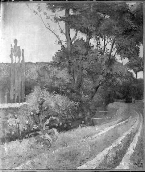 Détail représentant les bords de la Bièvre, peint par Parenty, 1908.