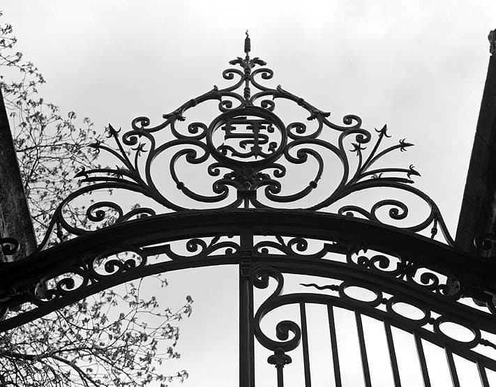 Détail du revers de la grille du portail d'entrée.
