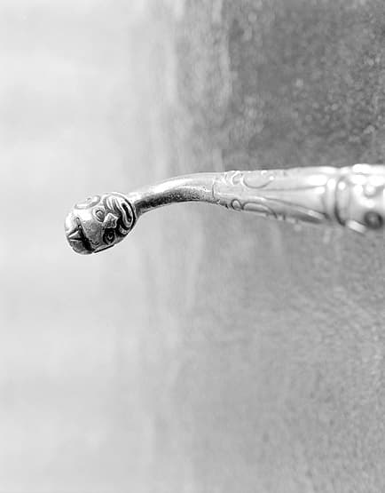 Détail de l'extrémité de la poignée de la porte-fenêtre.