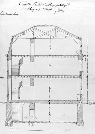 Coupe du bâtiment du presbytère donnant sur la place de l'Eglise.