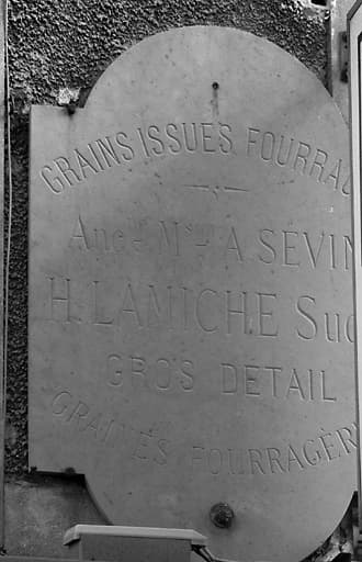 Plaque du marchand de fourrages installé autrefois dans l'immeuble.