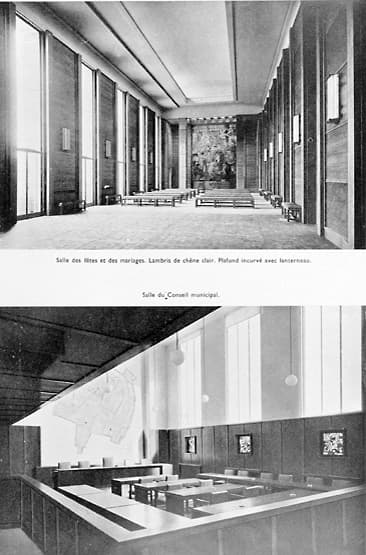 En haut, vue de la salle des fêtes et des mariages. En bas, vue de la salle du Conseil municipal.
