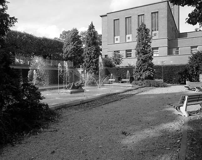 Vue de la face sud de l'hôtel de ville. Au premier plan, le bassin réalisé dans les années 1960.