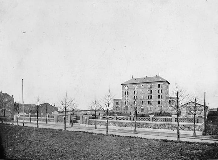 Vue d'ensemble de l'école depuis l'actuelle avenue du Président-Wilson.
