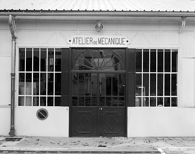 Vue de l'entrée de l'atelier de mécanique.