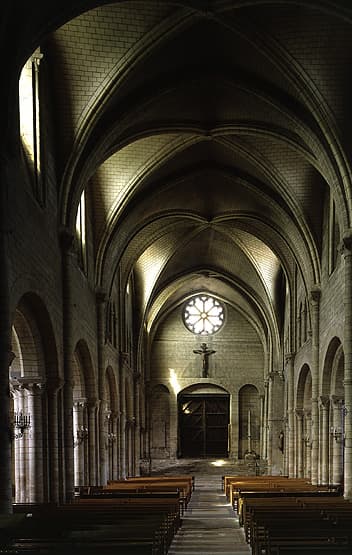Vue d'ensemble de la nef en direction de l'entrée.