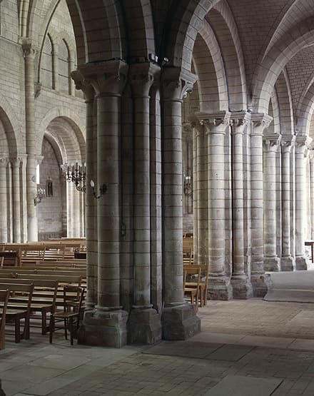 Vue des piles cruciformes de la nef, côté nord.