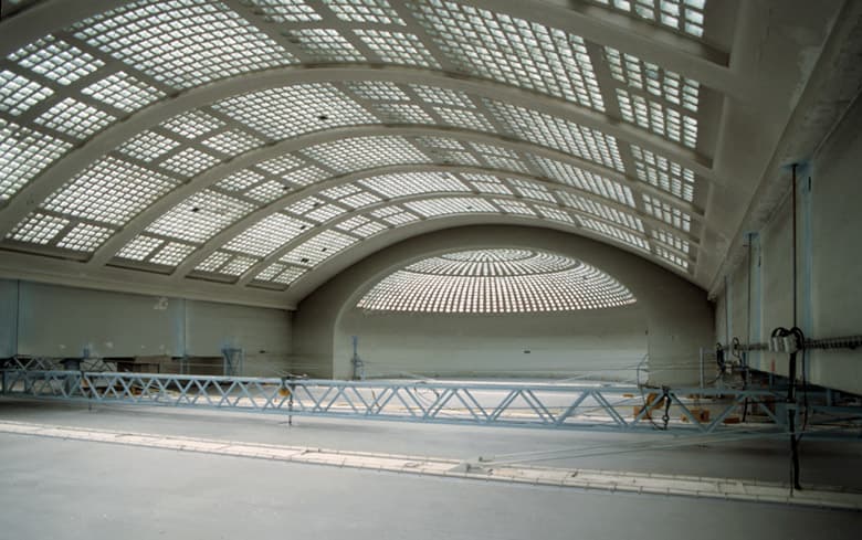 Vue latérale de l'ancienne voûte principale en pavés de verre depuis l'intérieur du musée.