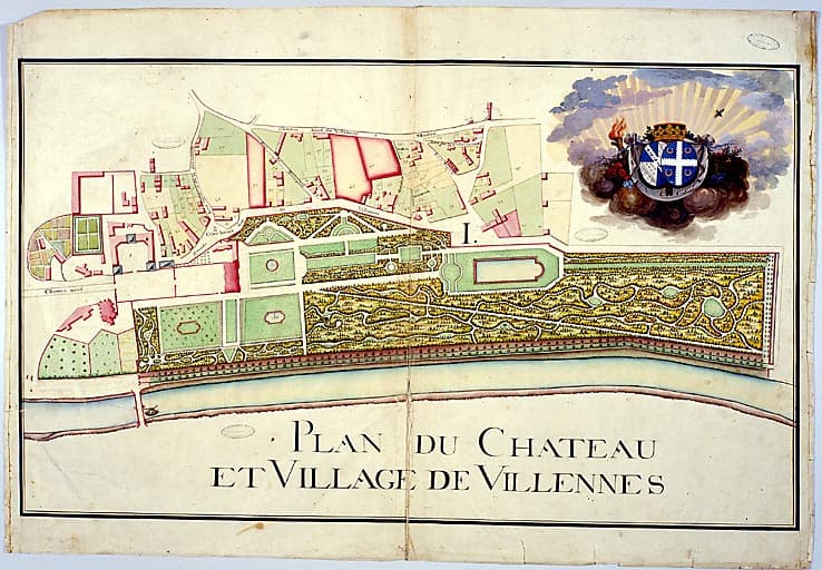 Plan atlas des seigneuries de Villennes : 'Plan du château et village de Villennes'.