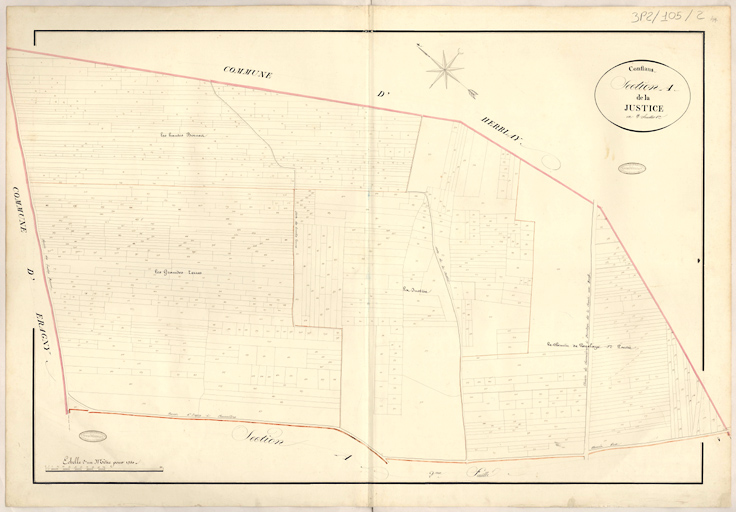 Cadastre napoléonien : Section A de la Justice, 1ère feuille.