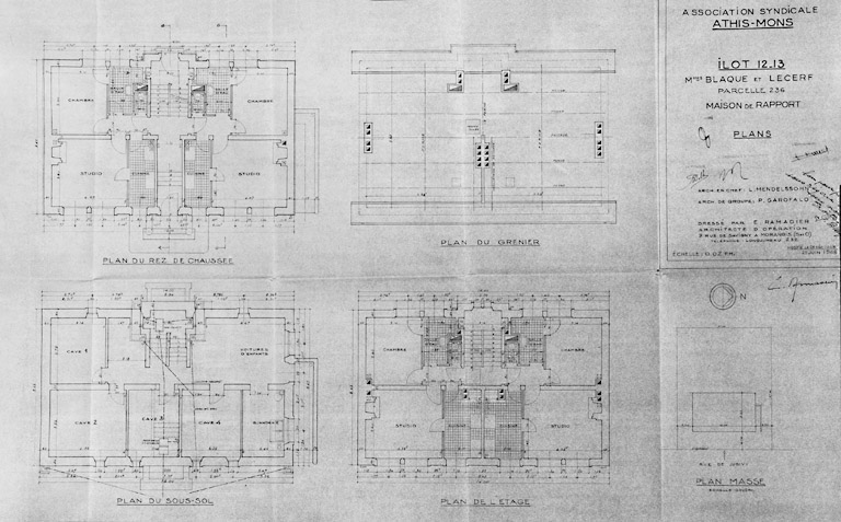 Plans de l'immeuble reconstruit pour Mmes Blaque et Lecerf dans l'îlot 12-13, par E. Ramadier, architecte d'opération, 25 juin 1948.