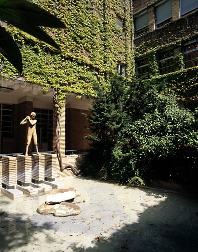 Vue du patio situé à l'est du bâtiment.