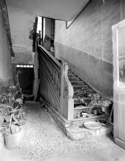 Vue de l'escalier situé dans l'angle nord-est du cloître, depuis le rez-de-chaussée.