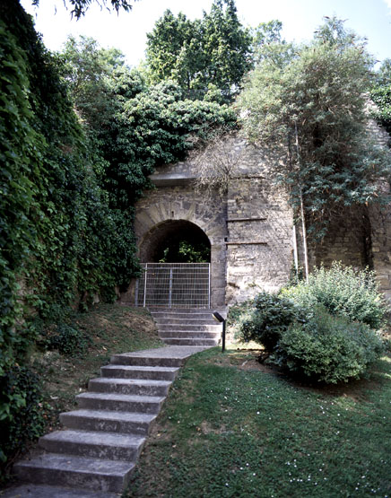 Vue du mur de soutènement de la ruelle du Gouffé depuis le 11, quai de la République.