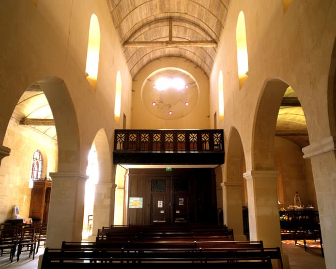 Vue d'ensemble de la nef depuis le choeur et vue du garde corps de la tribune d'orgue (ref : IM78002784).