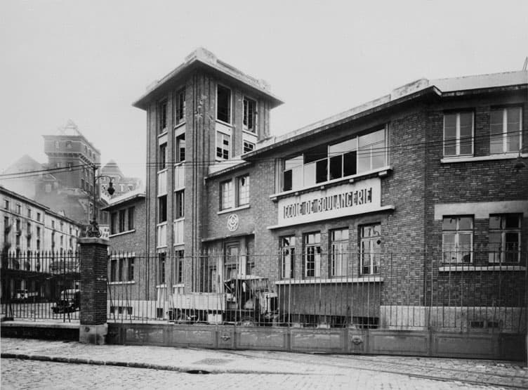 Vue du moulin d'essai, du laboratoire et de l'ancienne école de boulangerie, après l'incendie du 19 août 1944.