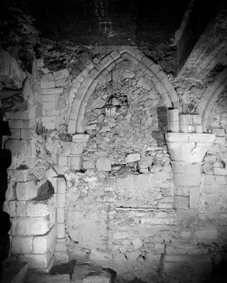 Crypte : collatéral sud travée occidentale (vu vers le nord). On remarque le bouchage du collatéral sud aux XVe XVIe siècles