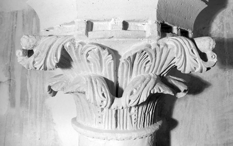 Le même chapiteau à feuilles d'acanthe, vu depuis un échafaudage en 2005.