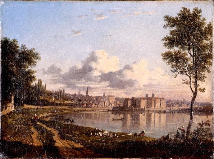 Vue de Melun depuis le chemin de Vaux, entre 1824 et 1868.