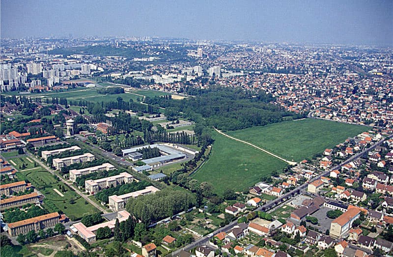Vue aérienne d'une partie de l'hôpital (pavillons Filliod), janvier 1994.