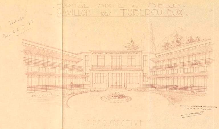 Projet de construction du sanatorium, par l'architecte Richardot : vue perspective.