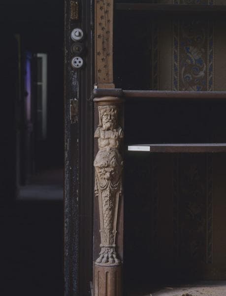 Détail du décor sculpté (moulé) des montants de l'ancienne bibliothèque de Camille Flammarion.