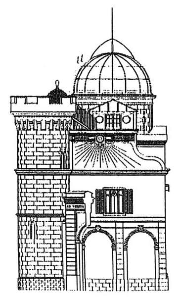 Bâtiment de l'observatoire-demeure de Camille Flammarion : élévation du pignon sud réalisée par Evelyne Mauger en 1998 dans le cadre d'un projet de réhabilitation commandé par l'Ecole d'architecture de Paris-Villemin.