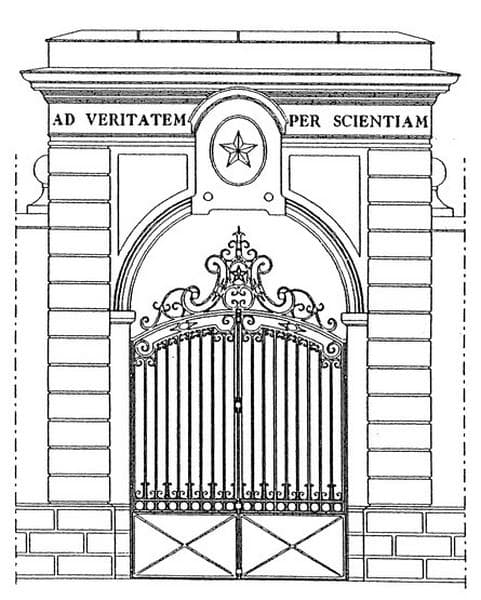 Bâtiment de l'observatoire-demeure de Camille Flammarion : élévation de la façade sud du portail d'entrée réalisée par Evelyne Mauger en 1998 dans le cadre d'un projet de réhabilitation commandé par l'Ecole d'architecture de Paris-Villemin.