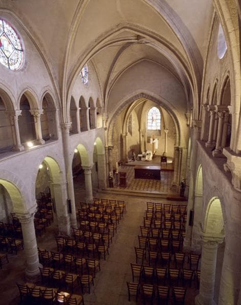 Vue intérieure desaxée vers le choeur depuis la tribune.