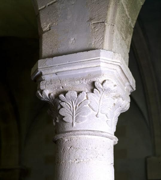 Détail d'un chapiteau orné de feuillages.