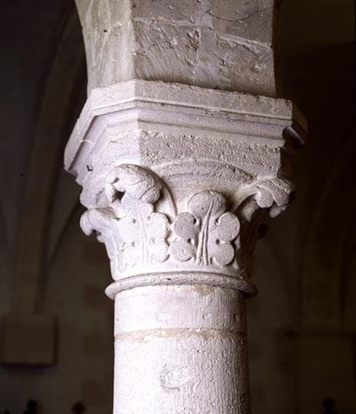 Détail d'un chapiteau orné de feuillages.