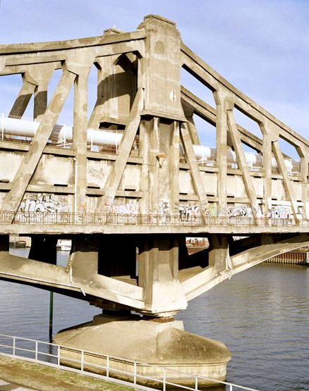 Ivry-sur-Seine, Charenton-le-Pont. Passerelle industrielle d'Ivry-Charenton. Détail d'une des piles en rivière.