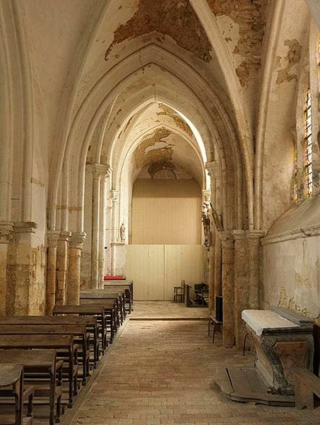 Vue intérieure : le collatéral sud de la nef, vu vers l'est, à hauteur de la travée n°2. L'arc brisé très élancé rachète la différence de taille entre la 2e et la 3e travée du bas-côté sud.